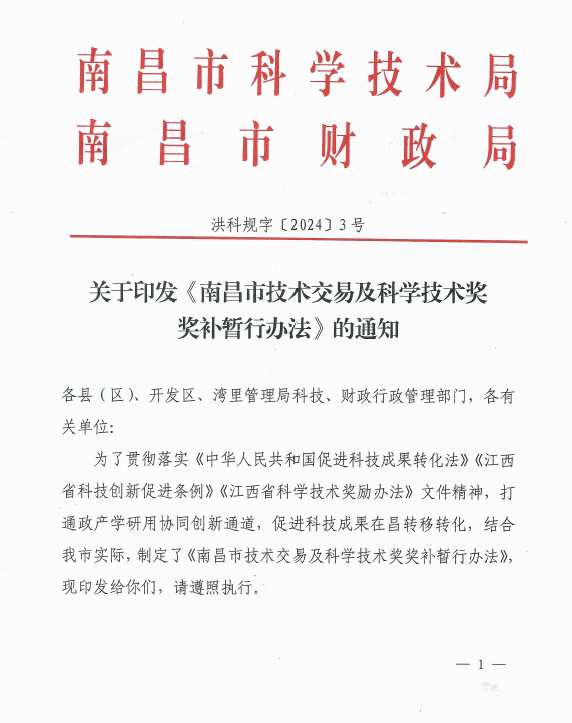 关于印发《南昌市技术交易及科学技术奖奖补暂行办法》的通知(洪科规字〔2024〕3号)
