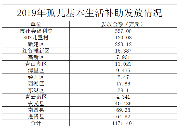 2019年孤儿基本生活补助发放情况
