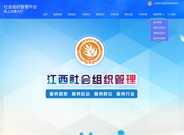 (六)自2026年度起,请各社会组织每季度通过江西省民政厅官网“网上办事大厅——组织活动管理”上传助力“四个服务”以及重点活动情况(附件4),相关内容将作为年度检查结论评判重要方面。