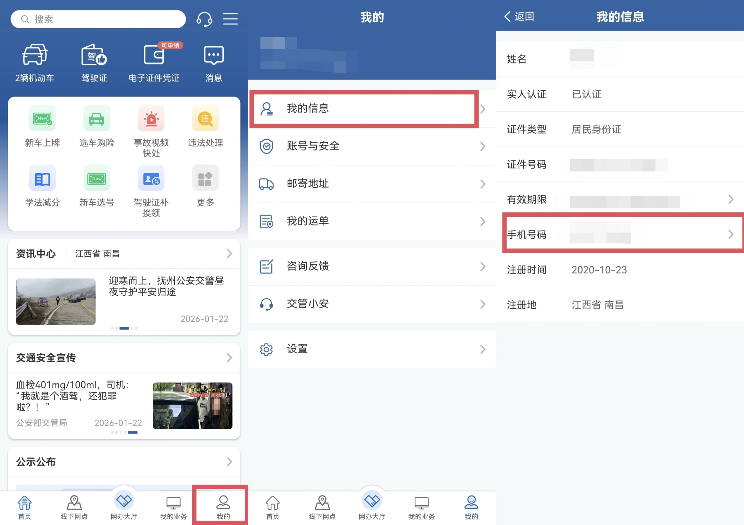 机动车、驾驶证联系方式一键更新